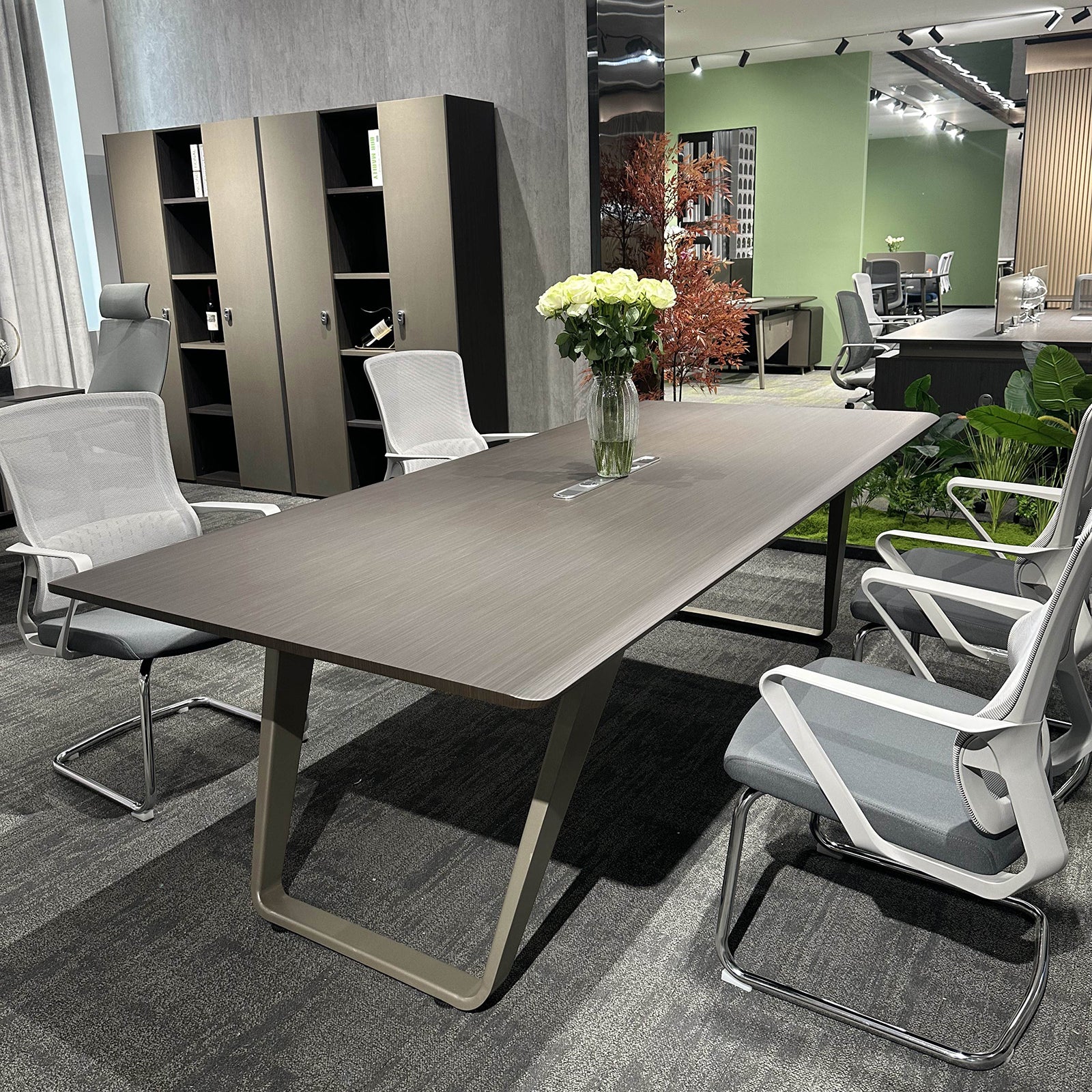 • This conference table boasts a clean, minimalist design that complements any modern workspace. Its elegant lines and finish exude a professional and sophisticated atmosphere.