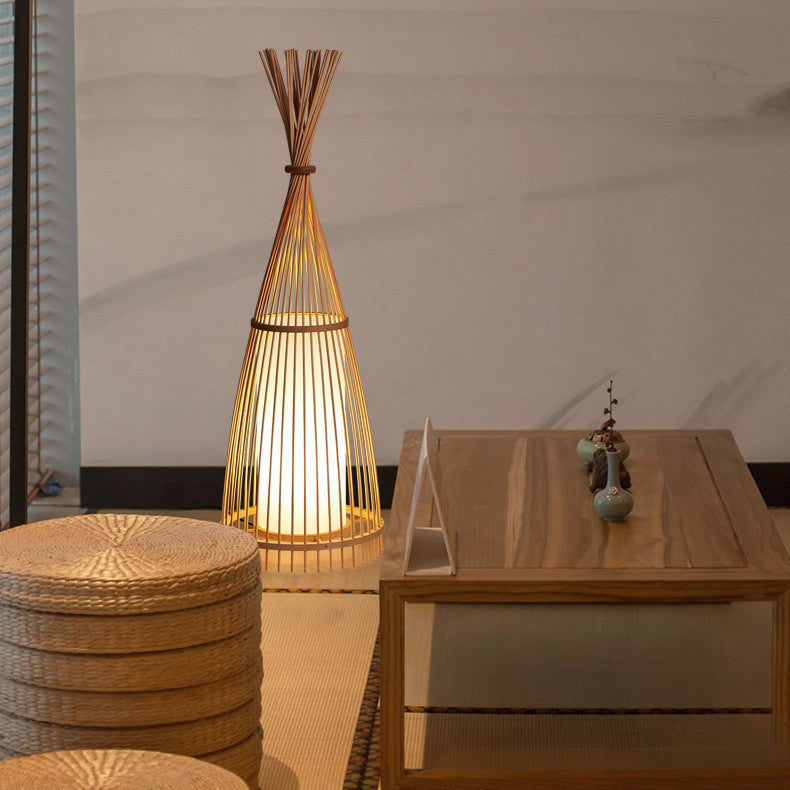VOFFOV®Decorative Bamboo Artwork Woven Floor Lamp Indoor Lighting, No Bulb