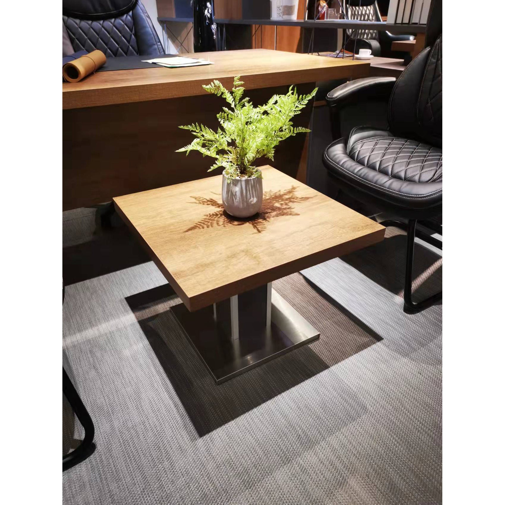 - Square shape table with cylinder base