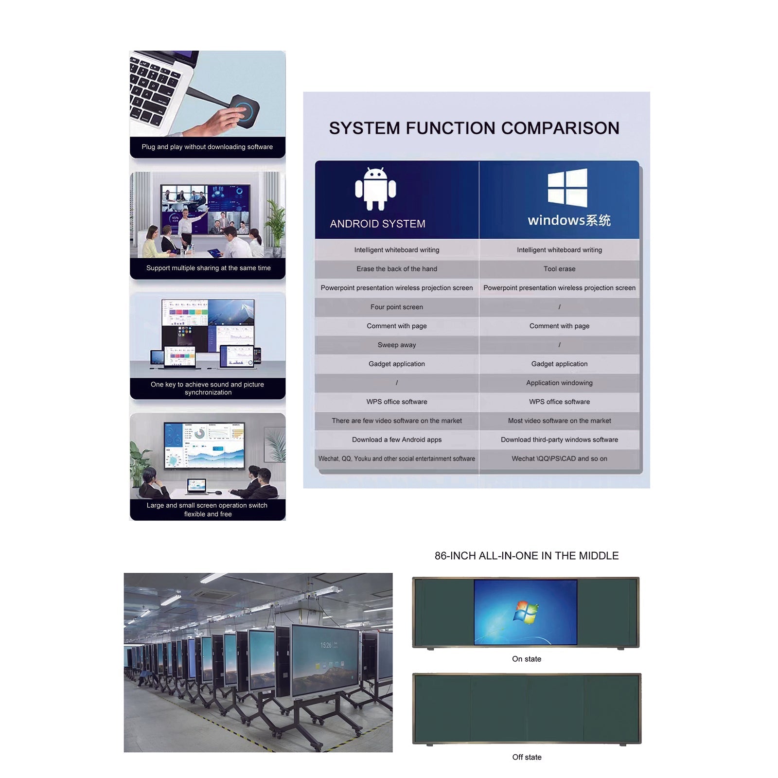 - 【Enhanced Video Conferencing Experience】Smart board interactive whiteboard works with any major video conferencing software like Zoom, Google Meet, Webex, GoToMeeting. Support muti-party video call, convenient screen sharing in real time, provide a better meeting experience.