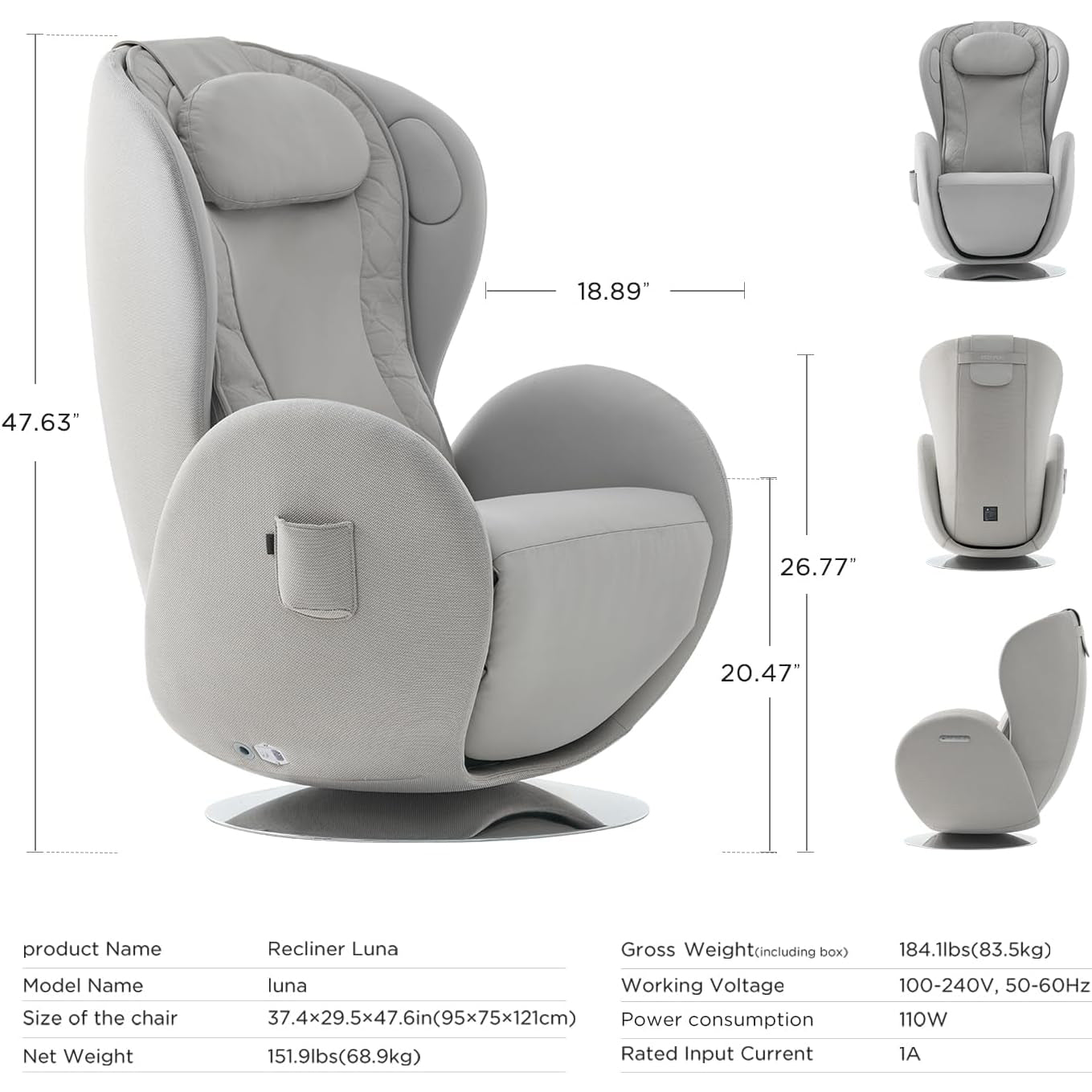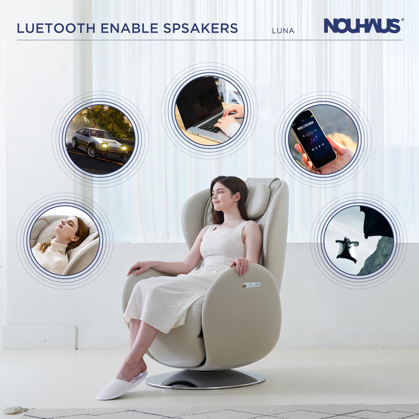 Nouhaus Luna Zero Gravity Massage Chair Elder White