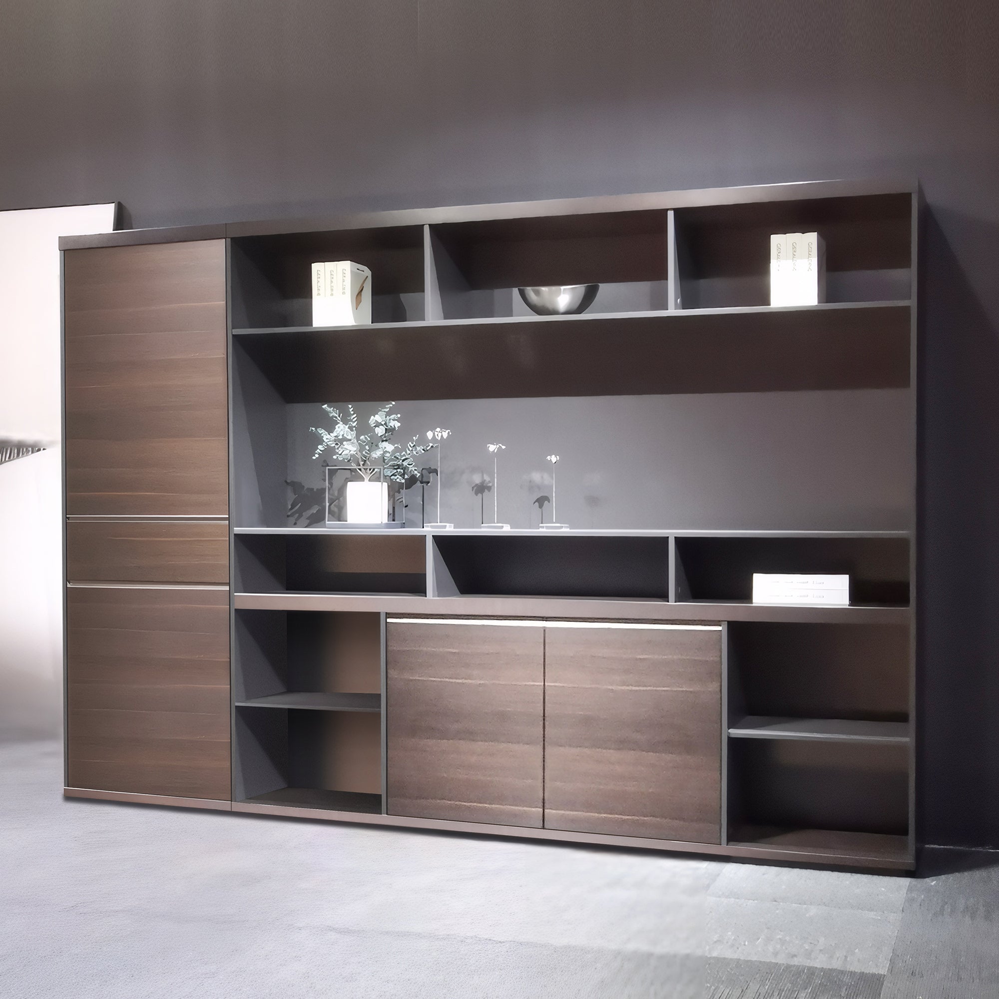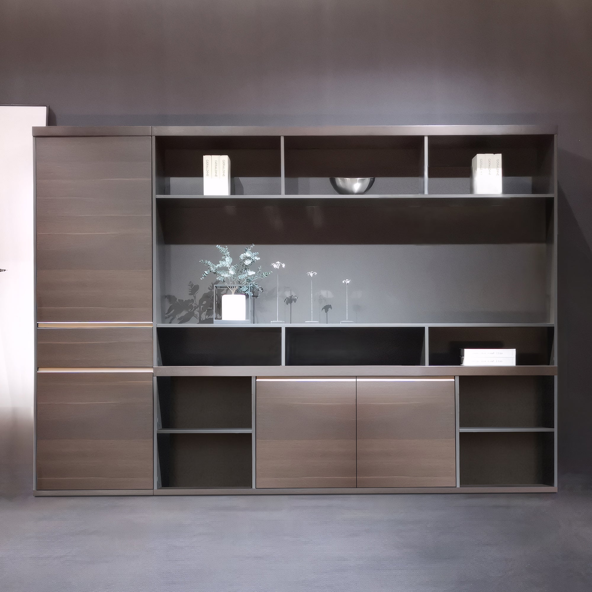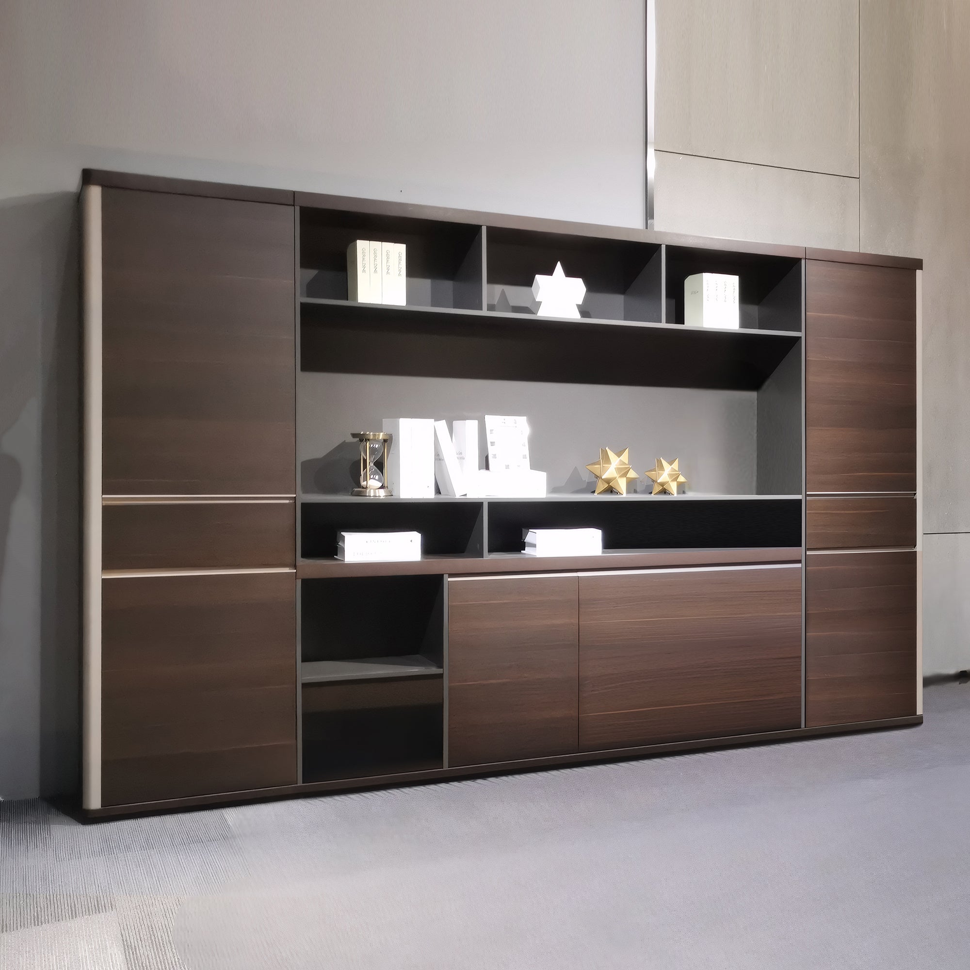 - 2 wardrobe for your coat and 5 tier shelf - 11 seperated open shelf for books, awards, art decoration and more