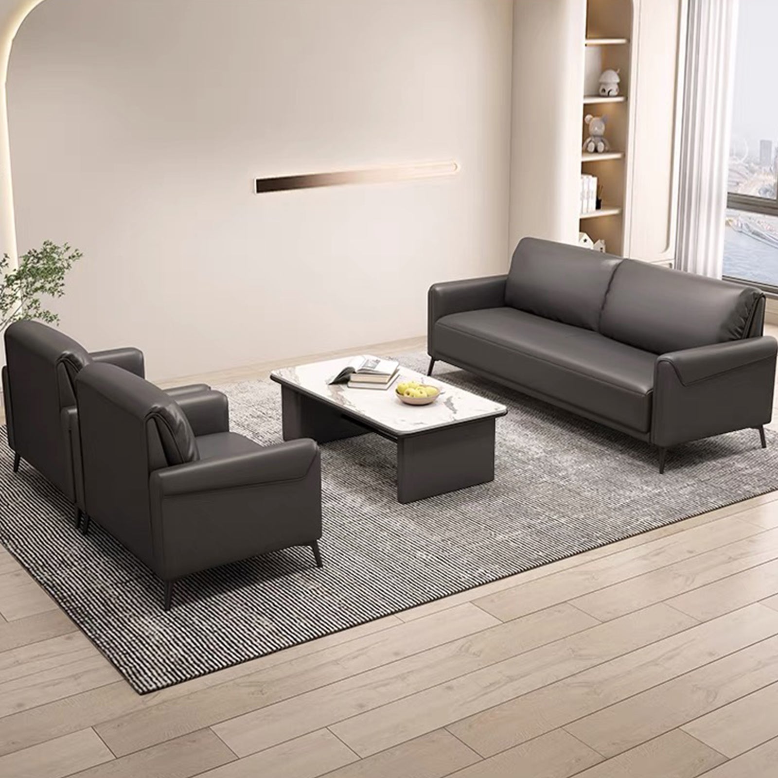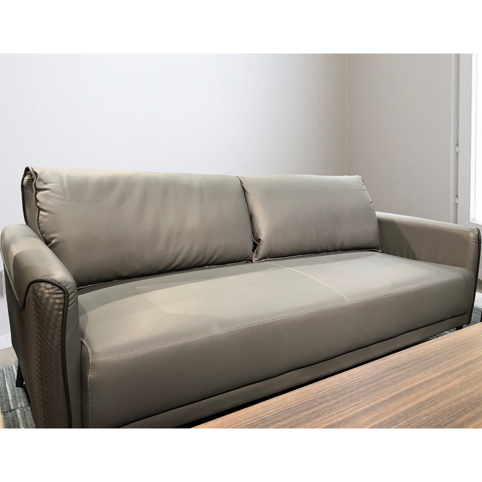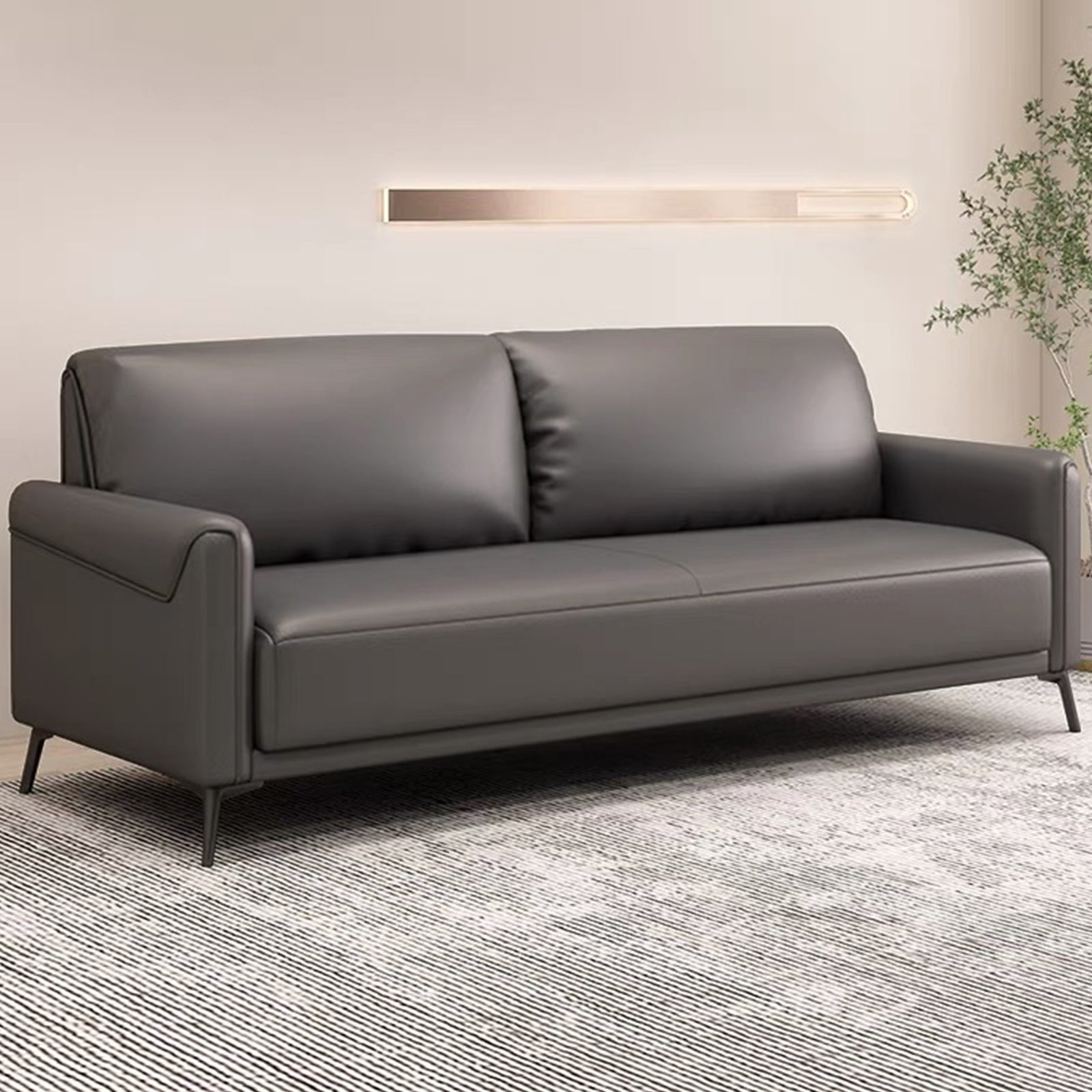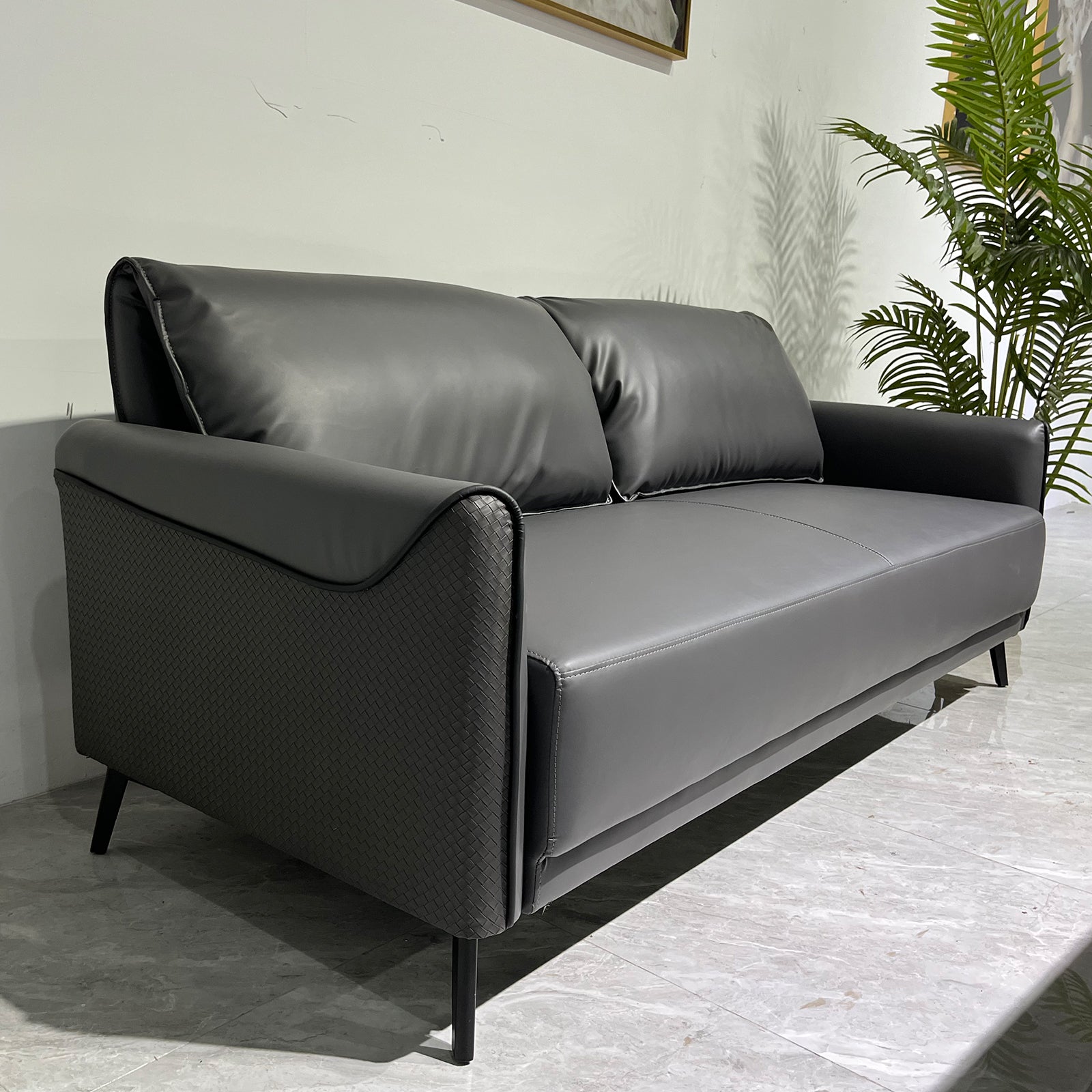 - The upholstery of the seat, backrest, and armrests is made from high quality PU Leather, offering a luxurious feel and rich texture. The leather is stain-resistant and easy to clean, ensuring it maintains its beauty over time. The sides and back of the sofa are crafted with PU Leather, providing a sleek and coordinated look.
