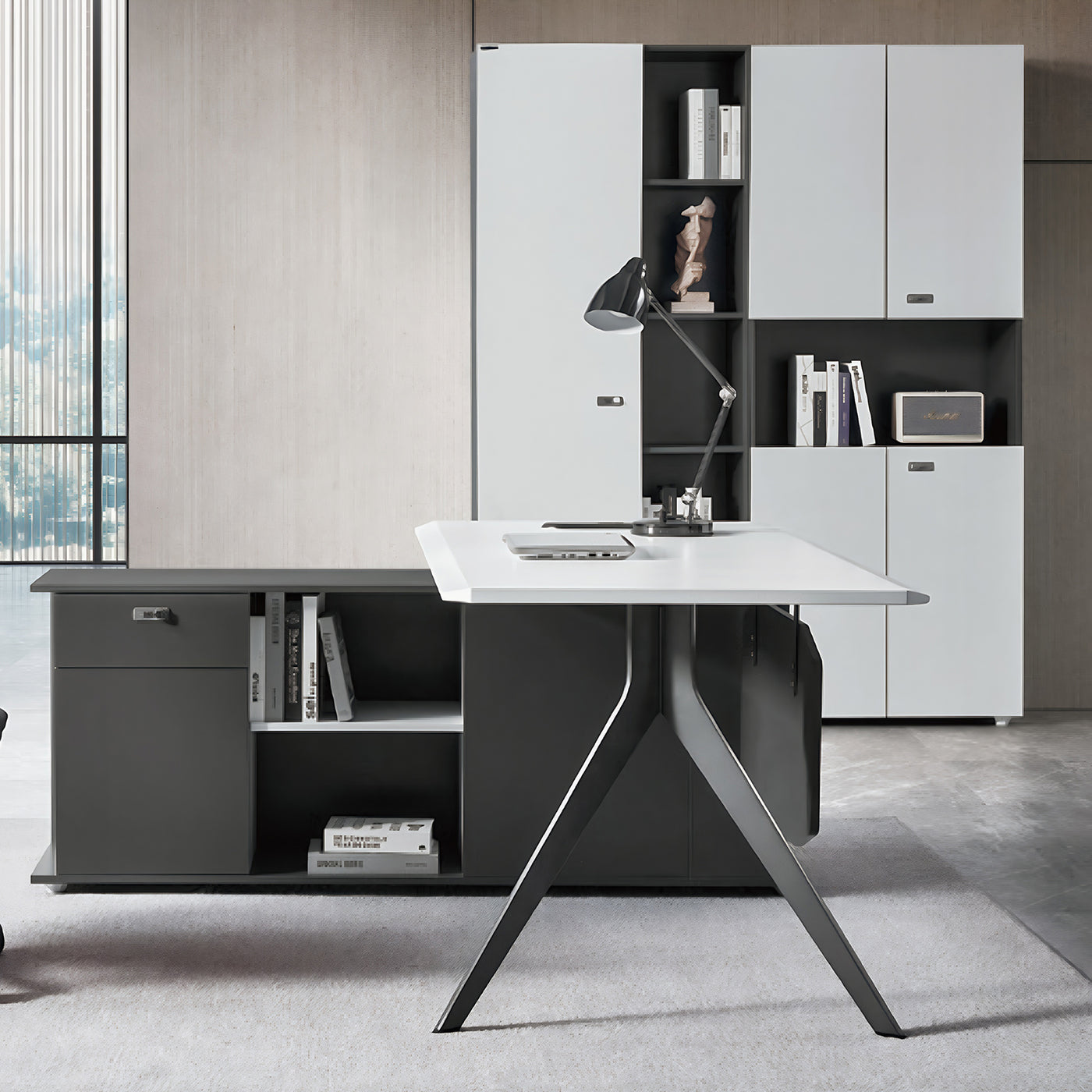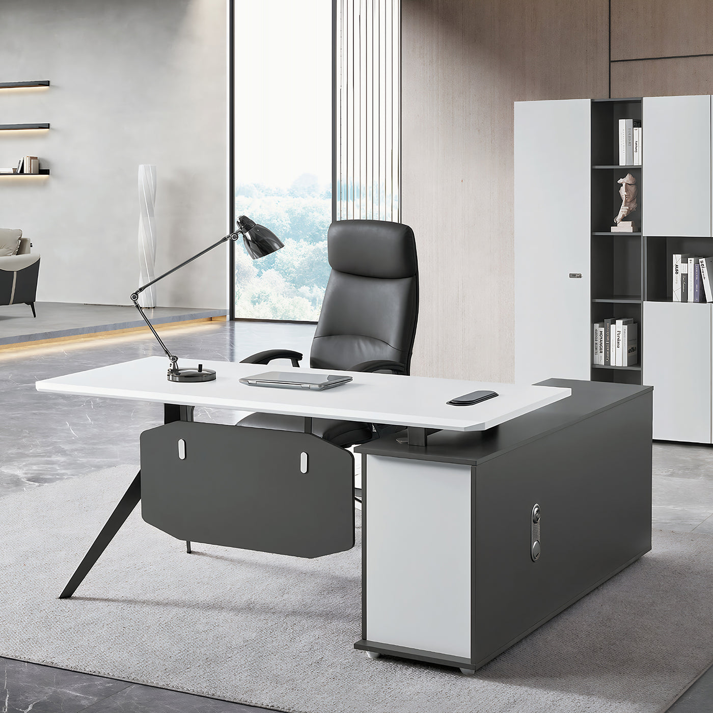 L-Shaped Desk With Drawers and File Cabinet
