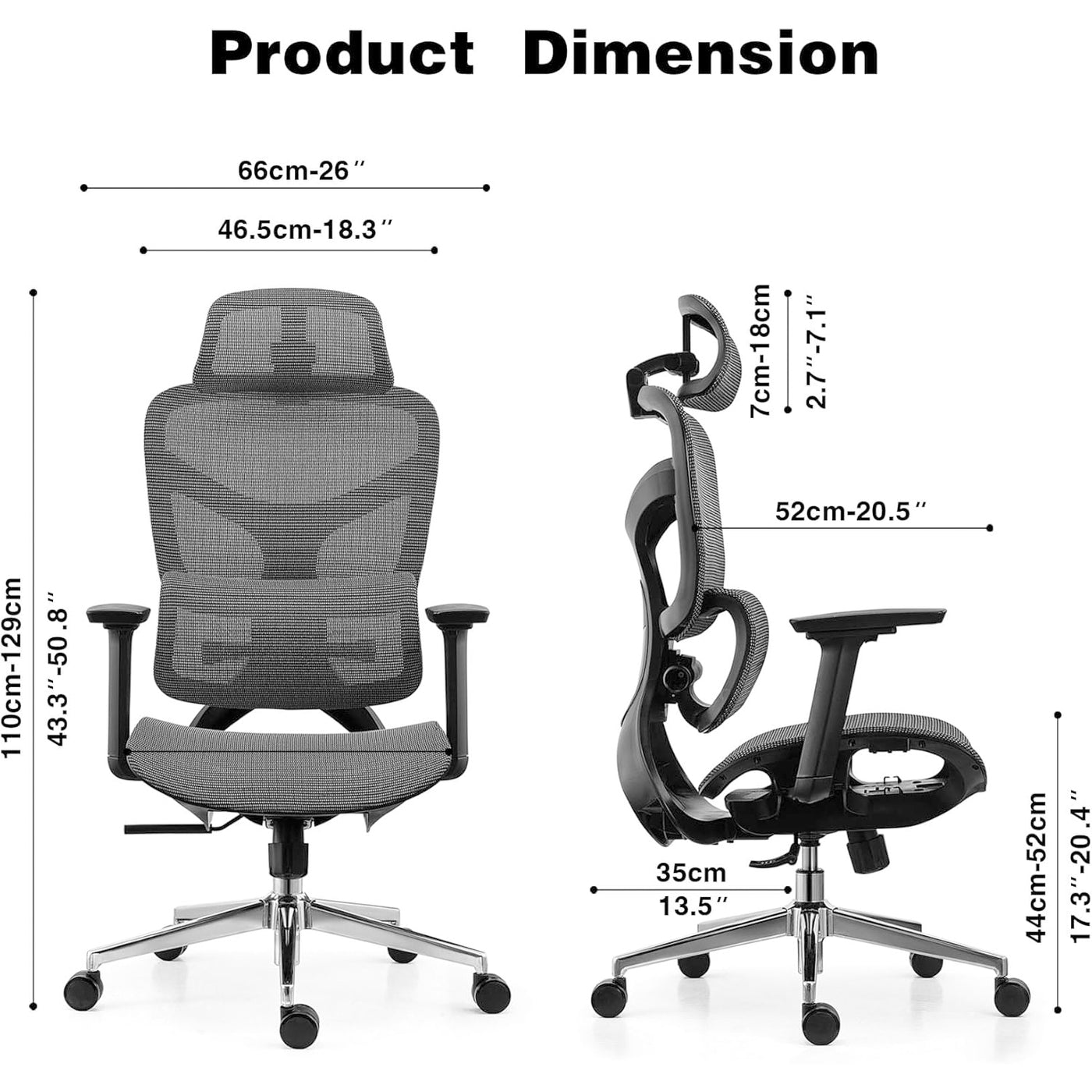• [Premium Quality Materials] This Ergonomic chair is made of premium new material and brazed to resist aging.Meanwhile has successfully passed rigorous tests such as 102 kg push back test and 950 kg hydrostatic test, capable of supporting up to 300 lbs.350mm electroplated square feet,60MM Silent Nylon Wheel. The level 3 GAS bars have been certified by SGS to ensure its durability and stability.