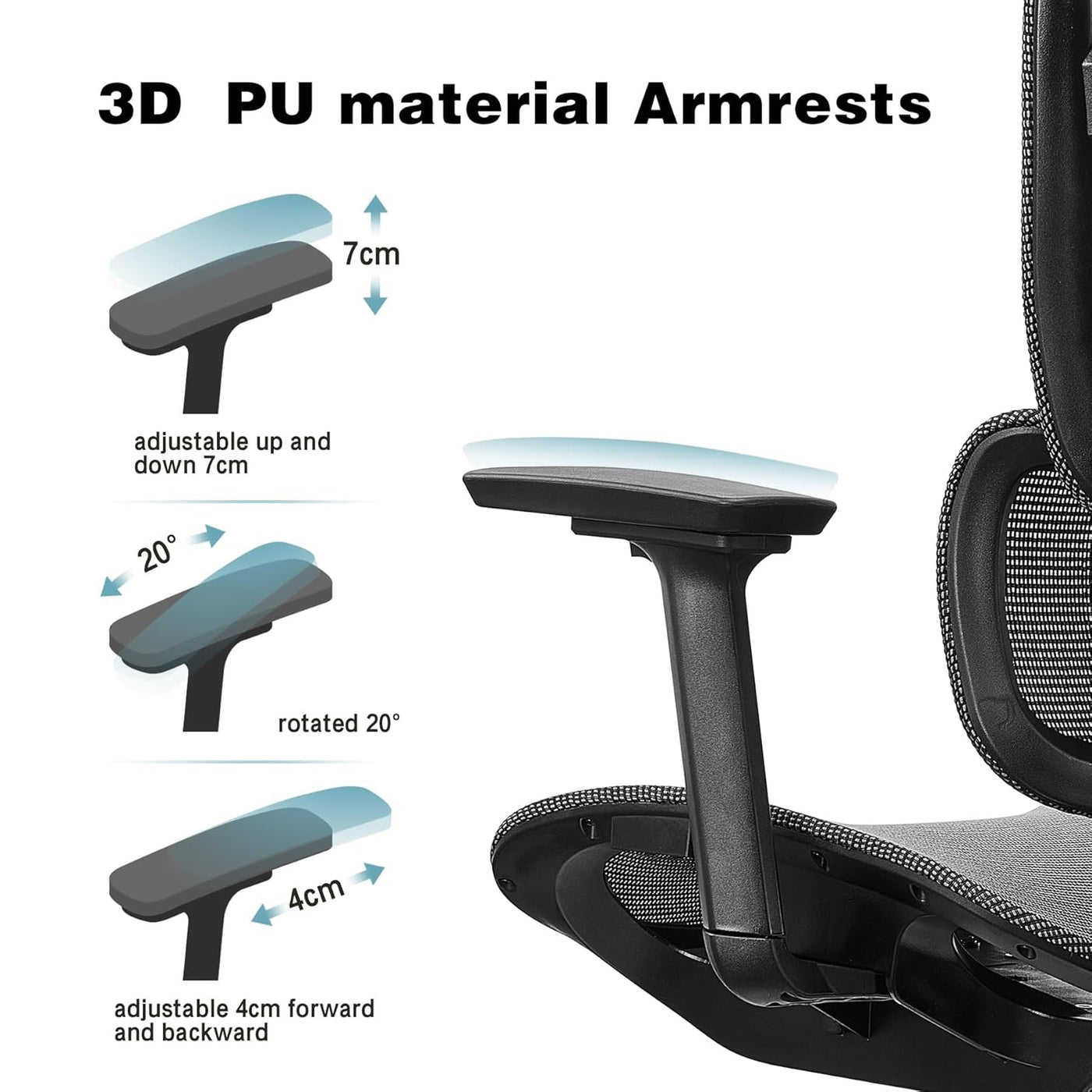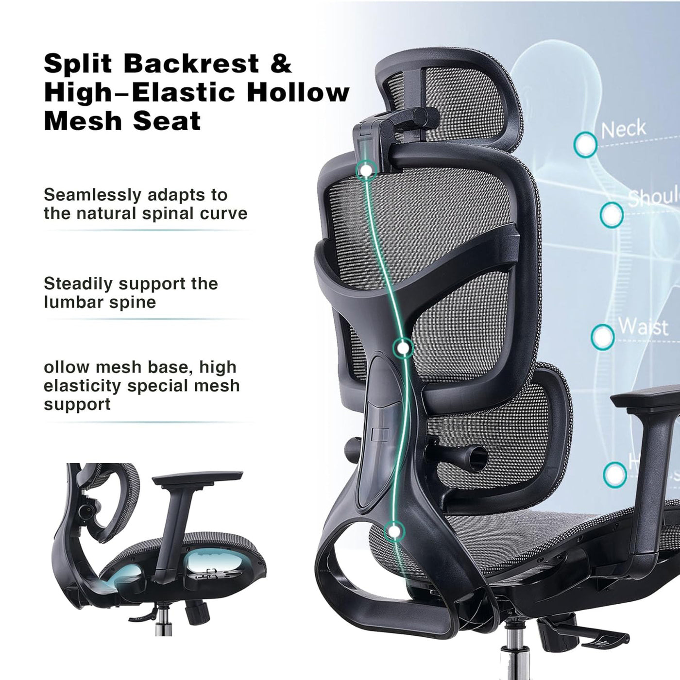 • [Dual Zone Backrest Ergonomic Office Chair] The Chair features a separated upper and lower back structure for targeted support, evenly distributing pressure and reducing fatigue during long - hours of sitting.Hollow mesh base, high elasticity special mesh support,3D pure soft PU adjustable armrests and 3D comfortable headrest,dynamic lumbar suppor accurately matching the position of the lumbar spine,let the body naturally stretch and focus more persistently.