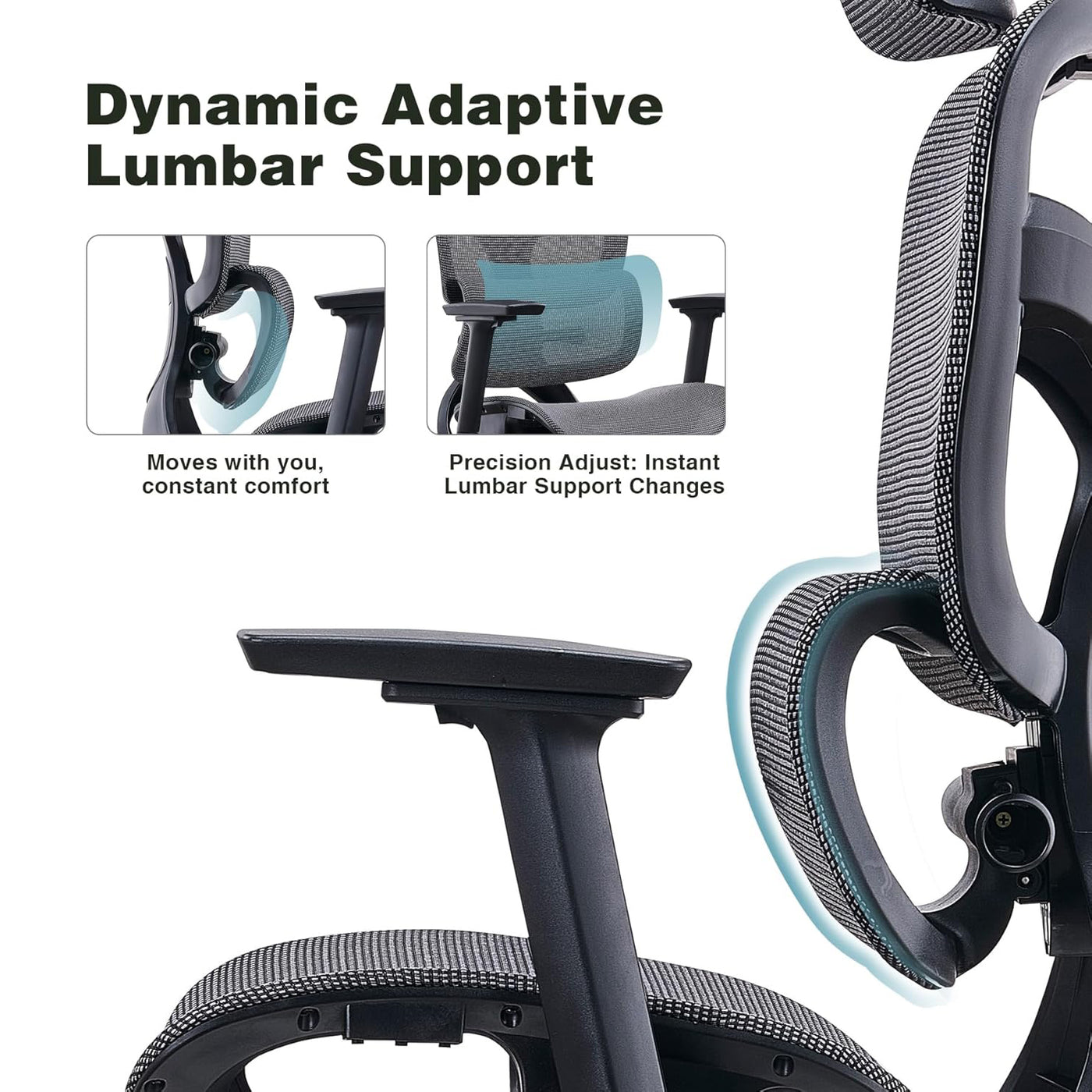 • [Separated Backrest and Dynamic Lumbar Support] This office chair features a separated upper and lower back design, support to relieve scapular pressure and stabilize and support the lumbar spine. Automatically tracks the dynamic adaptation of the lumbar pillow to different sitting positions.Equipped with automatic sliding up and down return function and can be tilted from 0 ° to 10 ° through rotate side handles to customize support strength.the spine always maintains a healthy curvature.