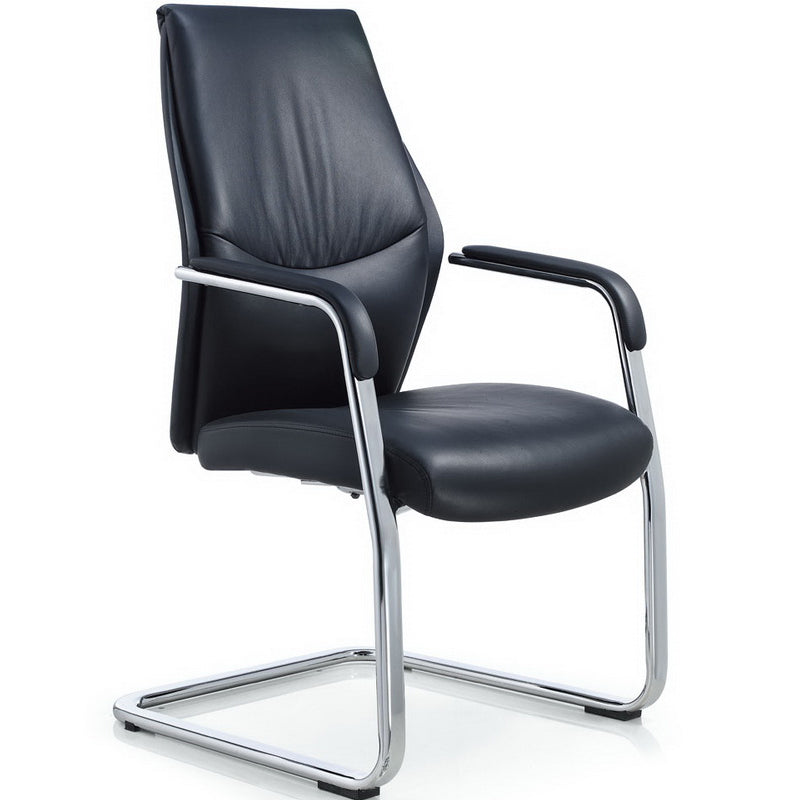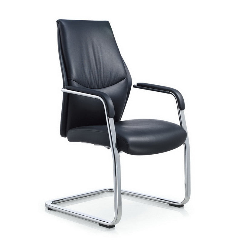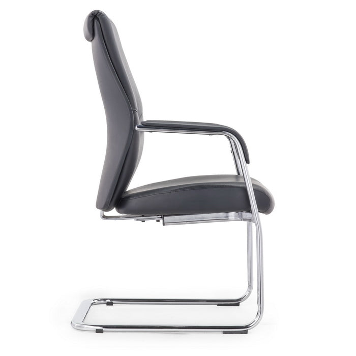 Faux Leather Visitors Chair with Padded Arms&Sled Base Black VOFFOV UAE