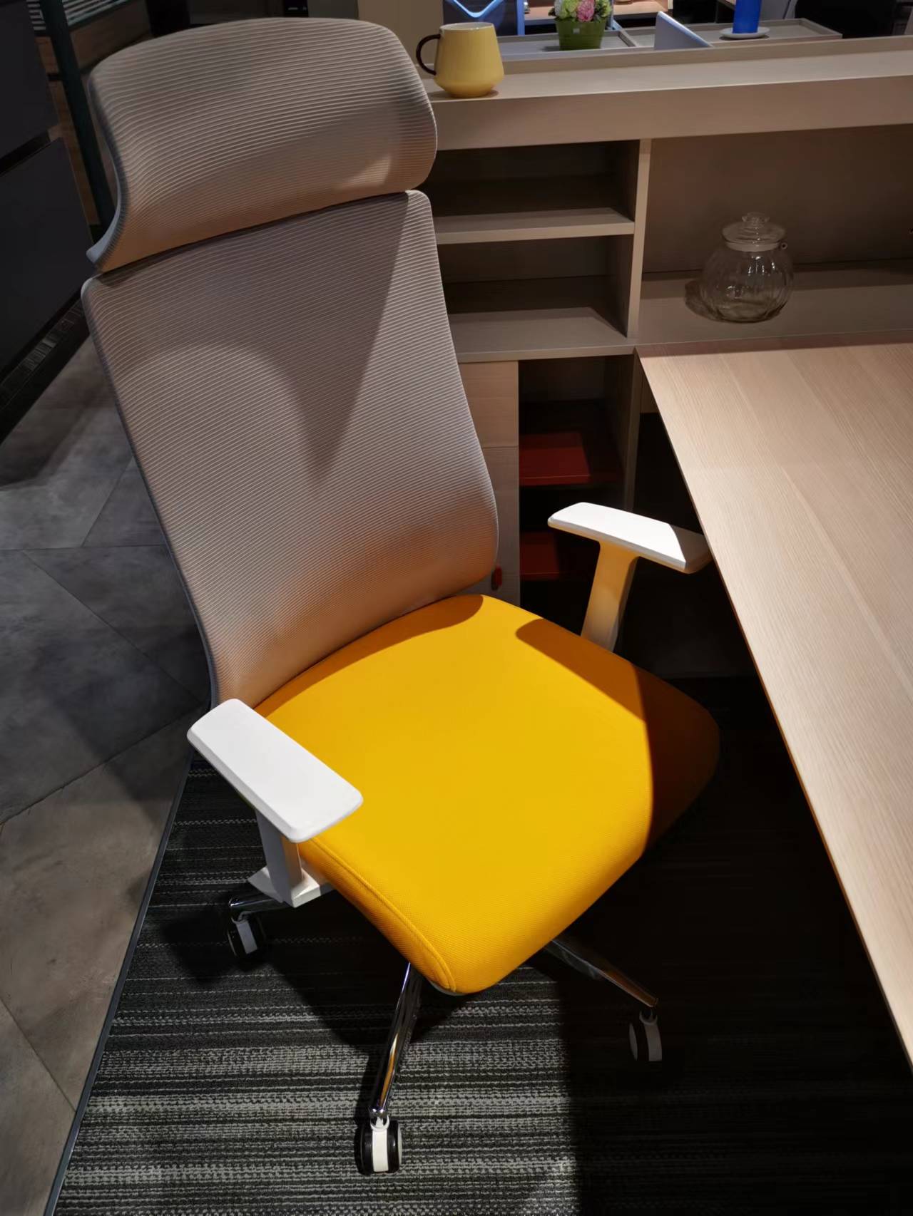 VOFFOV® Mesh Ergonomic Chair, Premium Office & Computer Chair with Adjustable Headrest - Yellow Grey