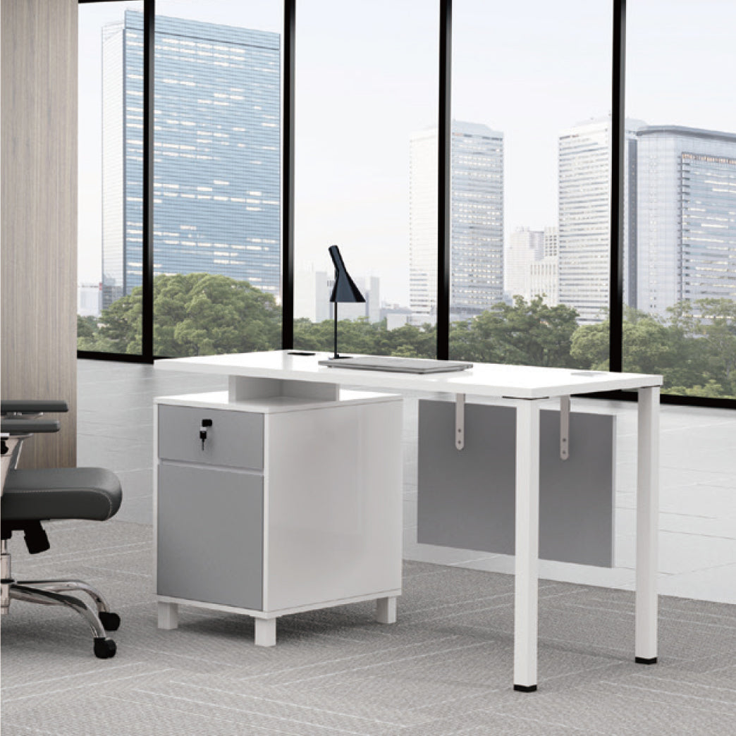 - Credenza: Side cabinet has 1 drawer with lock and one hidden cabinet, With 1 privacy panel