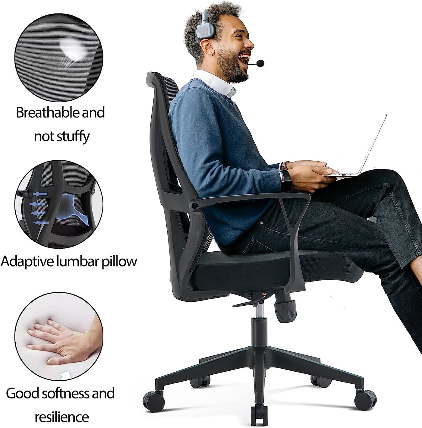 • 【Comfortable and safe】 This computer desk chair is made of high-density, highly elastic, and breathable mesh back with lumbar support and thickened cushion to provide you with the most comfortable posture. Thickened explosion-proof seat plate gives you more comfort and double security. Maximum capacity: 250 lbs.