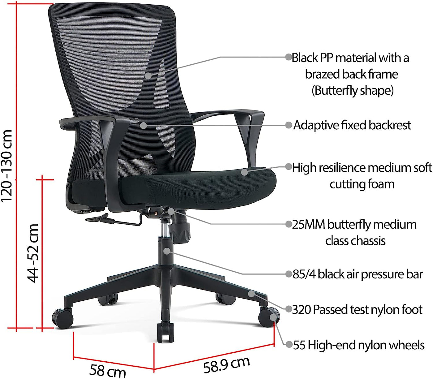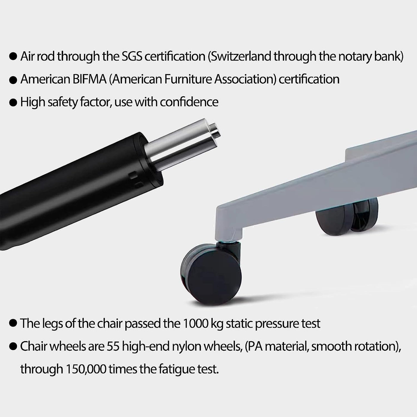 • 【Excellent performance, high quality materials】The computer chair has passed the 102kg push back test and 950kg static pressure test, and the height adjustable GAS bar has passed SGS certification, stable and safe. The backrest is made of a high-quality polyester mesh, highly elastic and non-deformable, wear-resistant, and breathable. The cushion is filled with a high-density thick sponge, soft and durable, keep cool without sweating, so you can relax comfortably.
