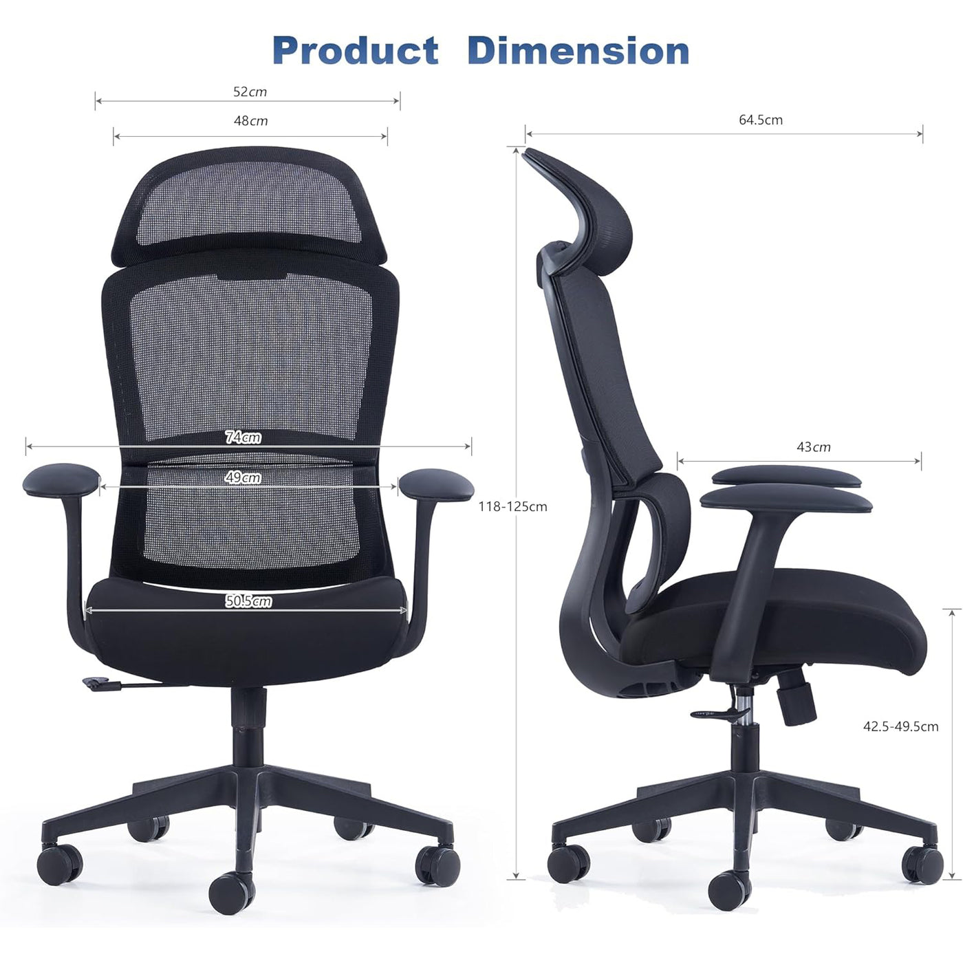 • [UPGRADE OFFICE CHAIR] The ergonomic office chair features a sectional backrest with individual lumbar support design.480mm wider headrest, T-shaped soft leather fixed armrest design, 6cm ultra-thick memory sponge seat cushion conforms to the hips to provide support. Also,according to your own height and weight can be adjusted desk chair freely.