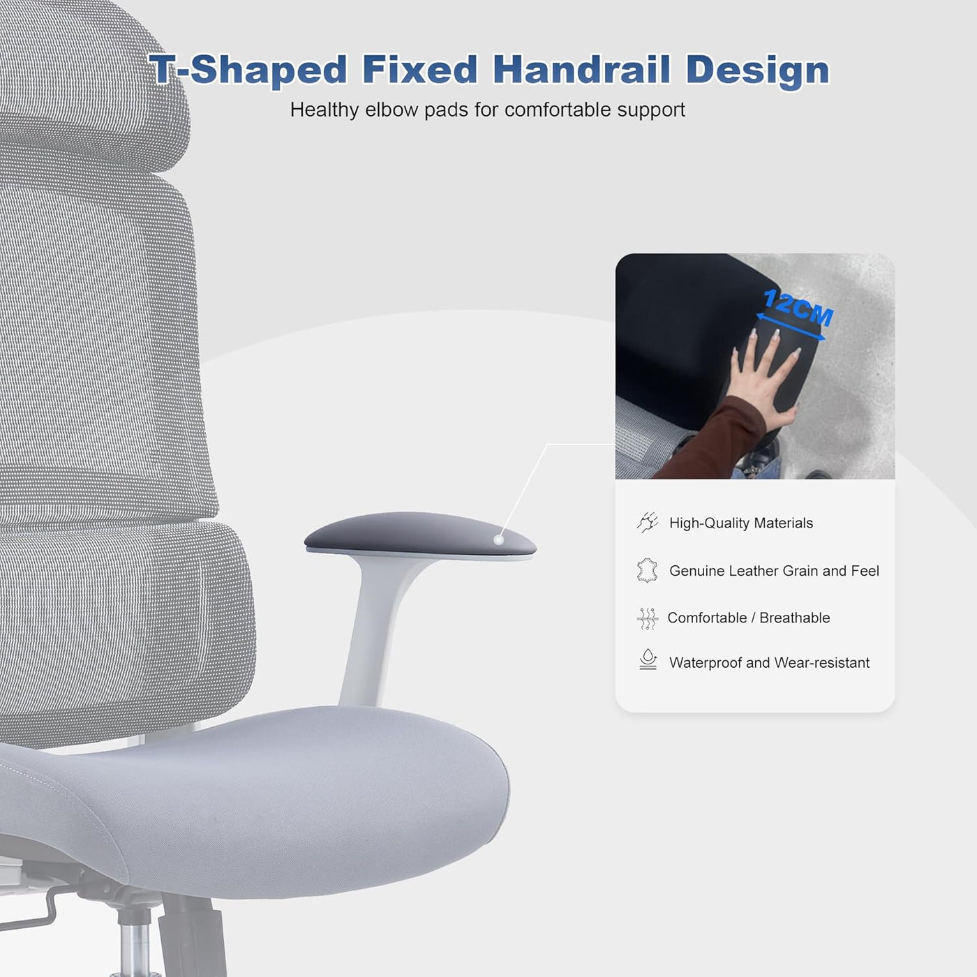 • [T-SHAPED ULTRA WIDE ARMRESTS] Say goodbye to arms nowhere to rest, 12CM ultra wide oversized armrest office chair, arm natural fit from shoulder to hand relaxation, in the T shape armrest surface wrapped in a layer of high quality soft super wear-resistant cat scratch cloth fabric, while embedded sponge padding, leather soft touch allows the user to comfortably lean on the elbows for a long time so that the elbows get a better support.