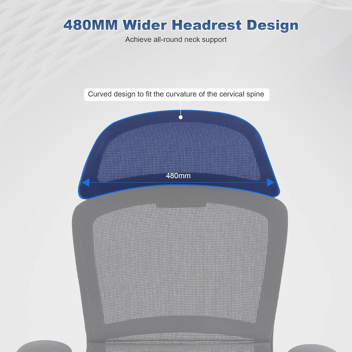 • [NEW UNIQUE HEADREST AND BACKREST] This office chair 480mm enlarged wider headrest, curved design fits the cervical curvature, all-round support for the neck. At the same time, according to the natural curvature of the human lumbar back design segmentation support system using a wider back, upper and lower separation of the back structure design, comfortable and seamless fit the human cervical curvature, independent lumbar support lumbar discs to give more powerful support.