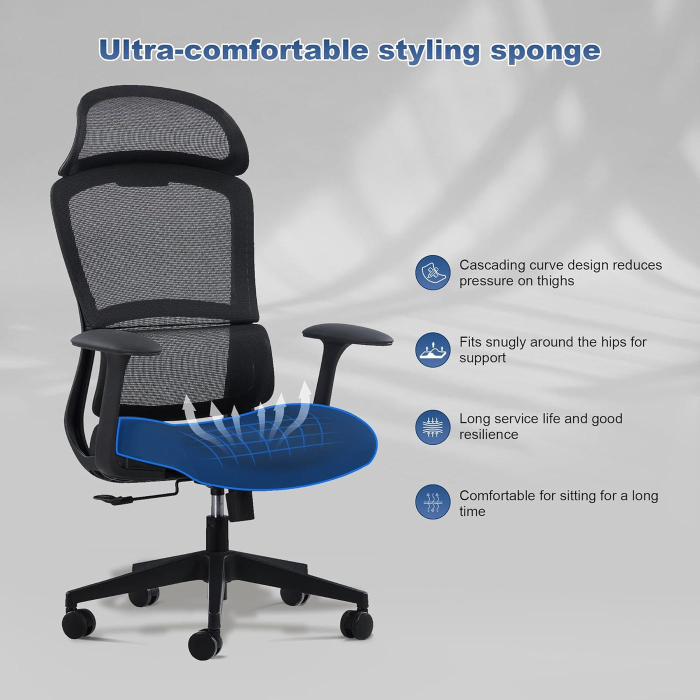 VOFFOV® High Back Office Chair with Lumbar Support,Black