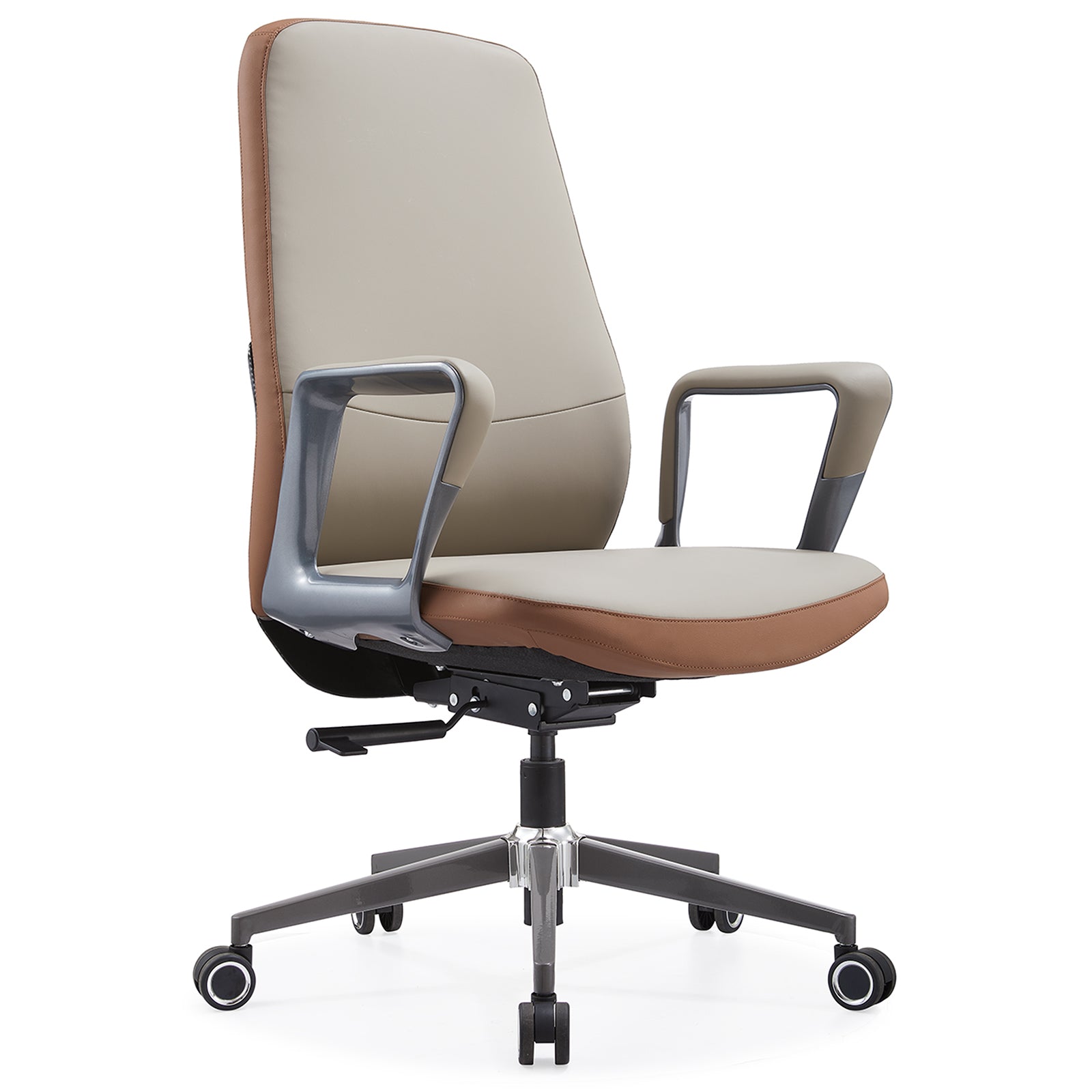 VOFFOV® Modern Middle-Back Ergonomic Faux Leather Tilt-adjustable Office Chair, Beige
