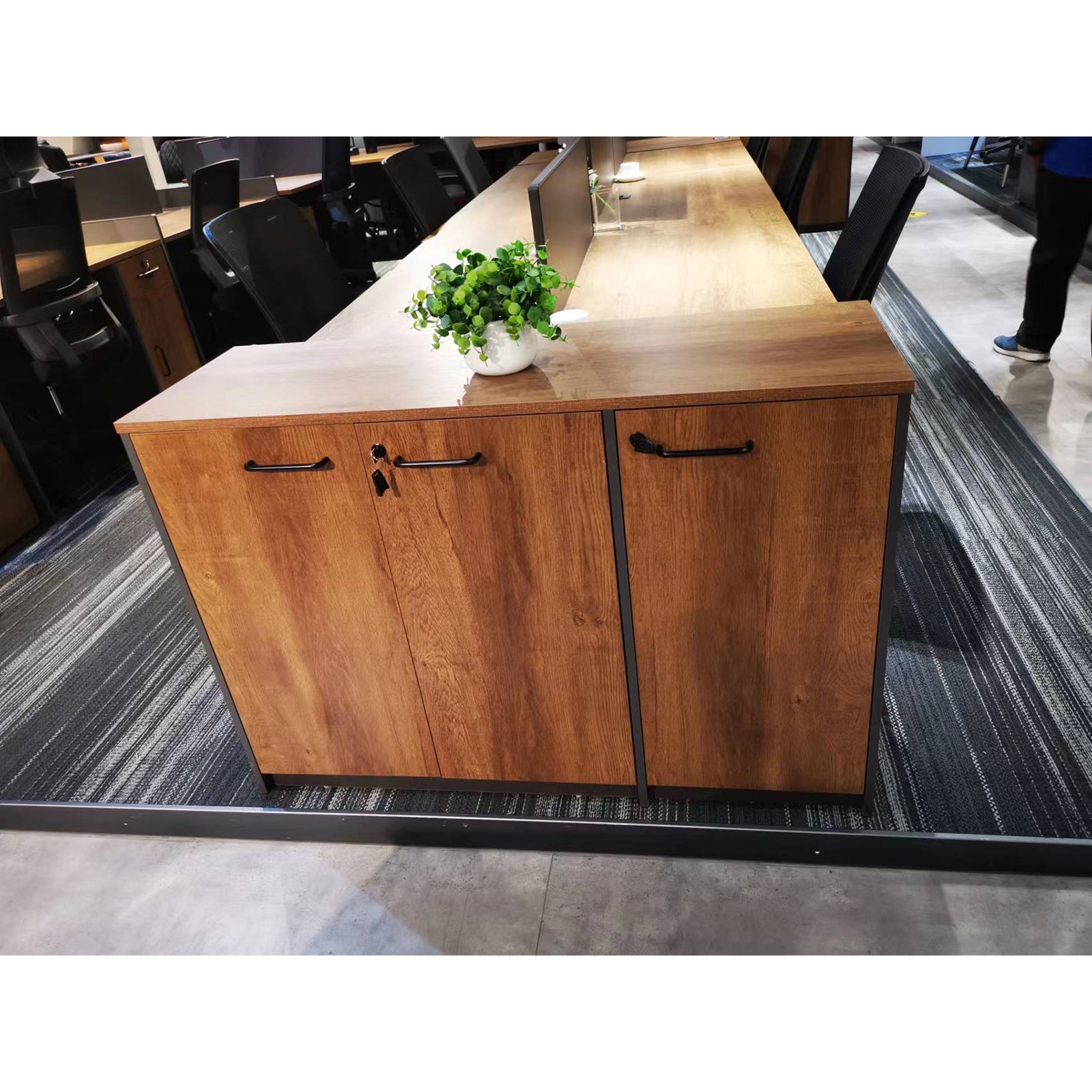 VOFFOV® Storage Cabinet Wood Counter Cabinet with 3 Lockable Doors